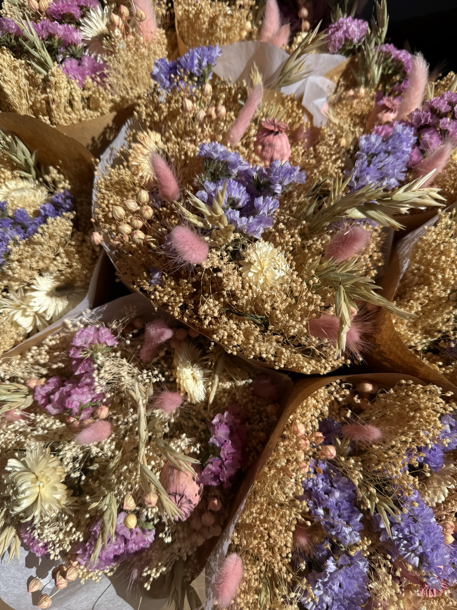 Suszone kwiaty tworzą duży bukiet. Nie tylko nadadzą się jako prezent, będą pięknym urozmaicenie dla wnętrz mieszkania, restauracji czy hotelu. Co najważniejsze nie musisz pamiętać, aby wymieniać wodę w wazonie ;)