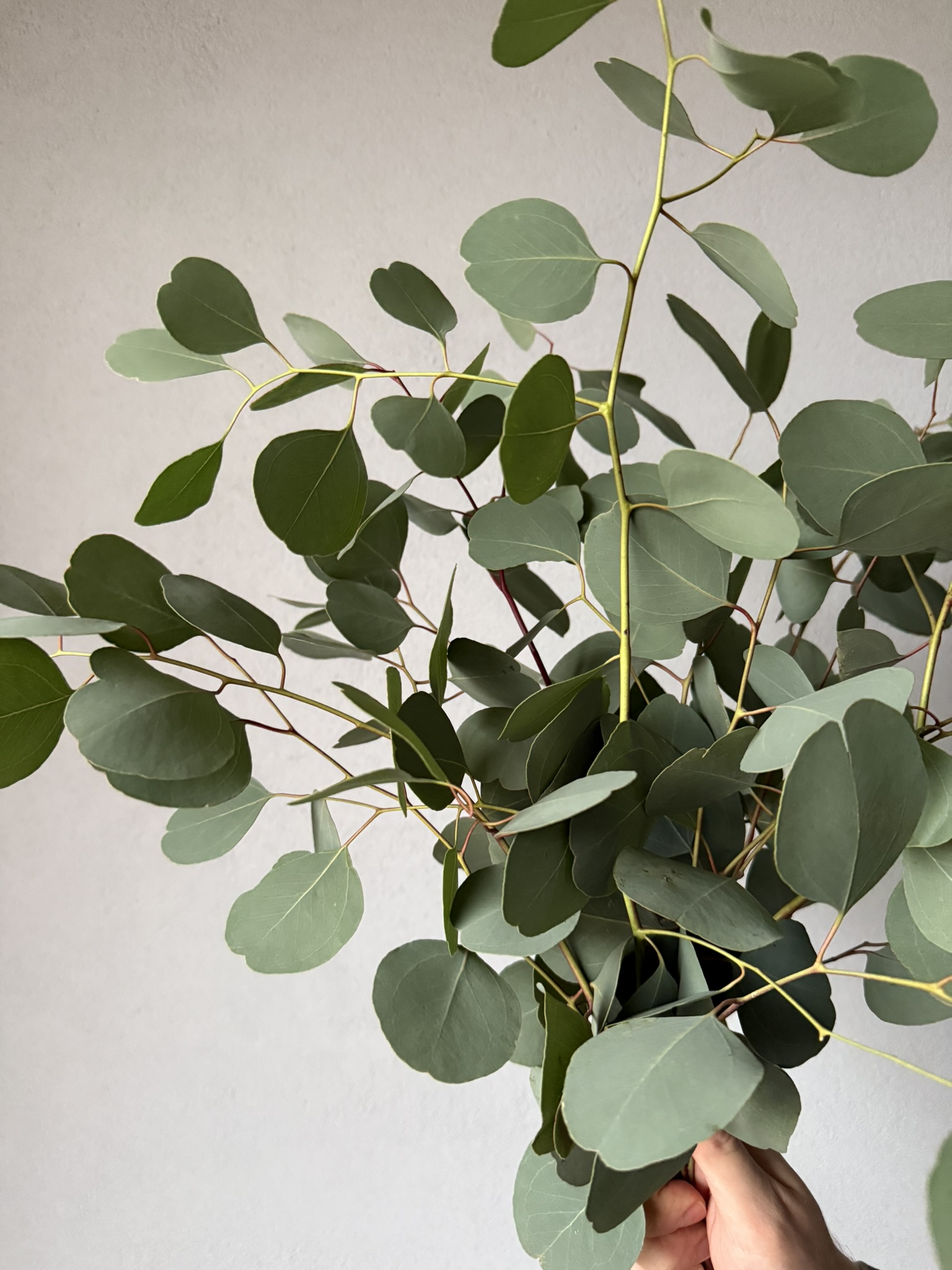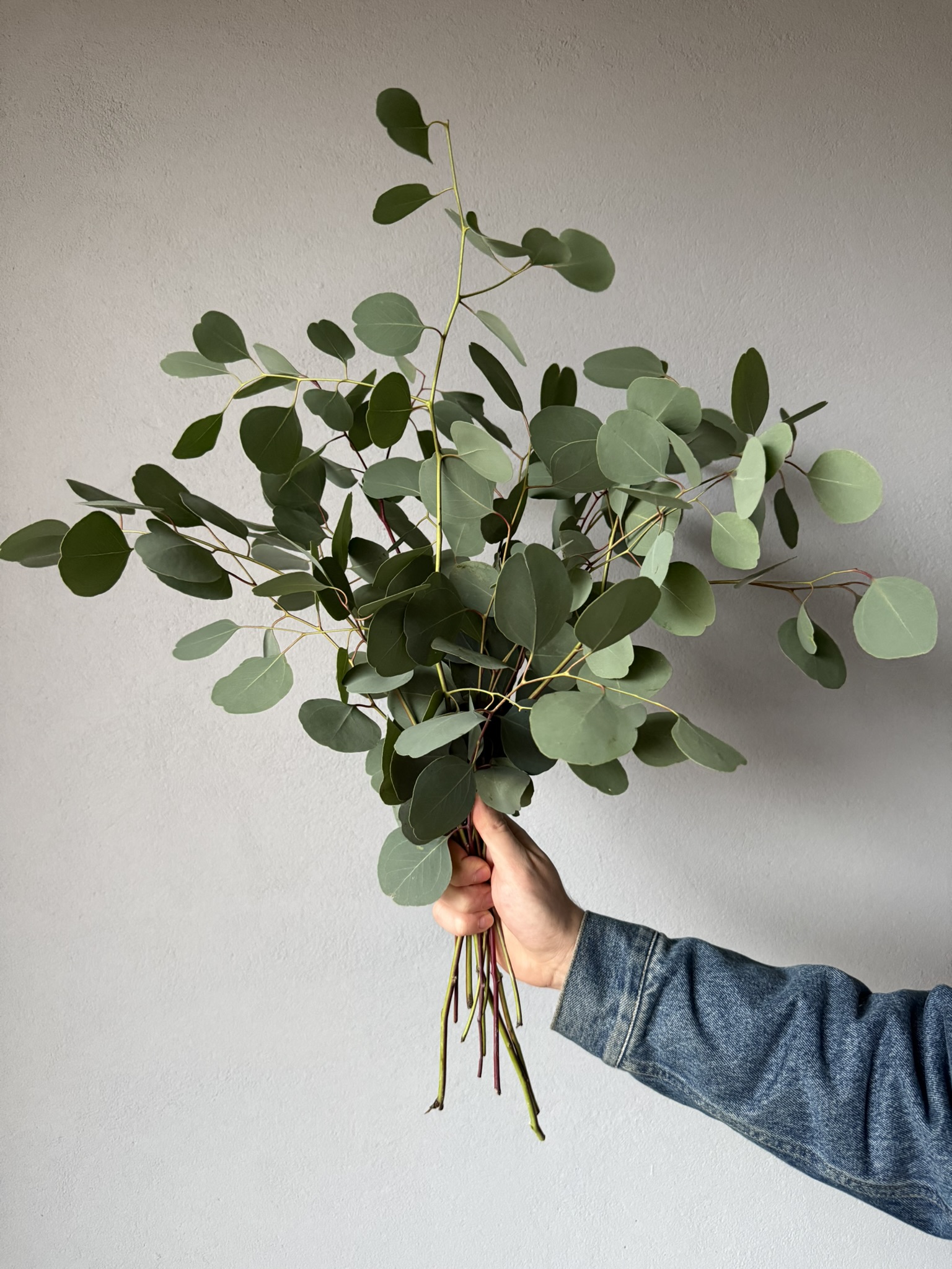 Gałązki świeżo ciętego eukaliptusa są w pełni naturalne i zachowują swoją strukturę oraz lekki zapach typowy dla tej rośliny, dzięki czemu świetnie prezentują się zarówno w wazonach, jak i w kompozycjach florystycznych. Żywe liście eukaliptusa budują objętość i wprowadzają do wnętrza spokojną, zieloną bazę, która pasuje do stylu japandi, skandynawskiego, modern i boho. Gałązki można wykorzystać jako samodzielną dekorację albo jako tło dla kwiatów świeżych i suszonych, a po czasie także zasuszyć, zachowując ich kształt i kolor.