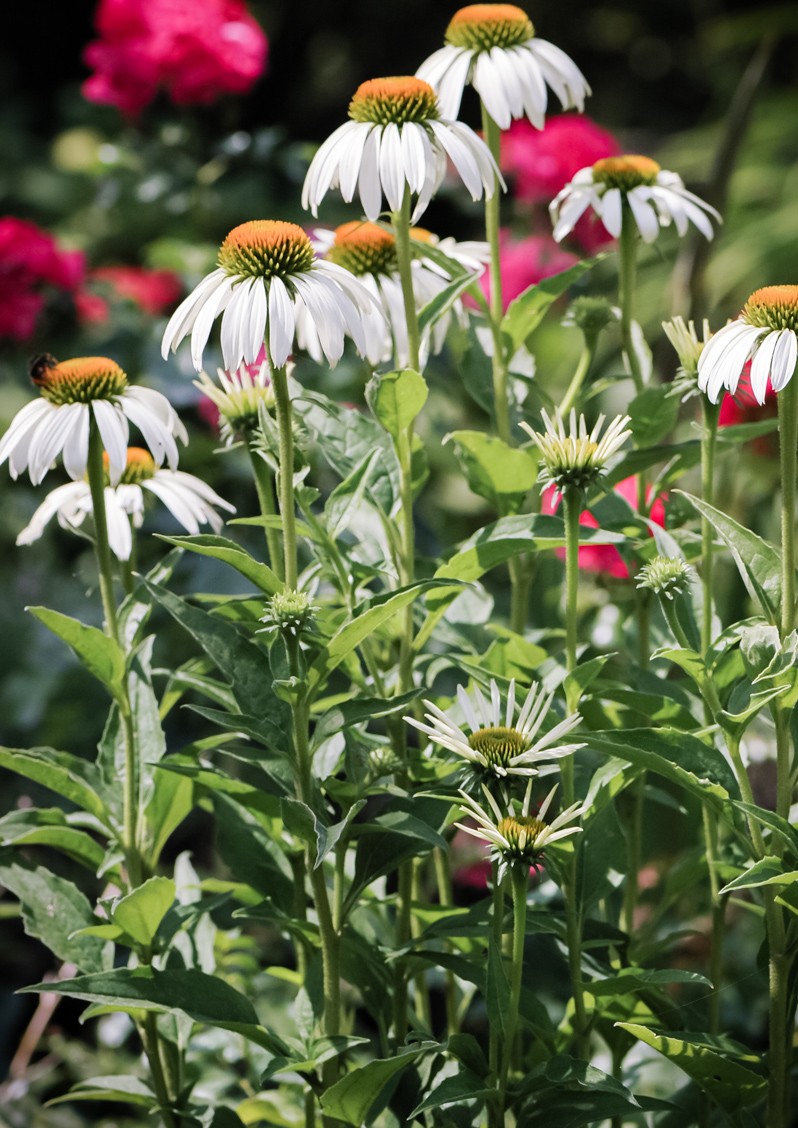 Jeżówka to również roślina miododajna – jej kwiaty przyciągają pszczoły, motyle i inne zapylacze, wprowadzając do ogrodu życie i naturalny ruch. Świetnie sprawdza się w nasadzeniach naturalistycznych, gdzie liczy się lekkość i swobodny charakter kompozycji.