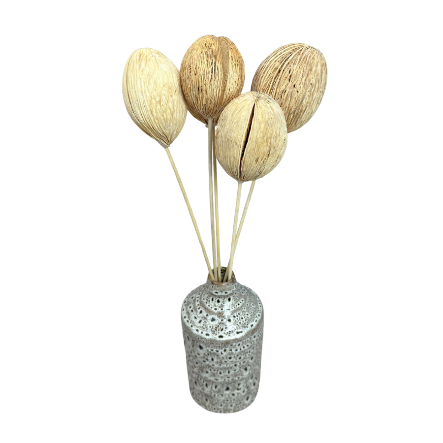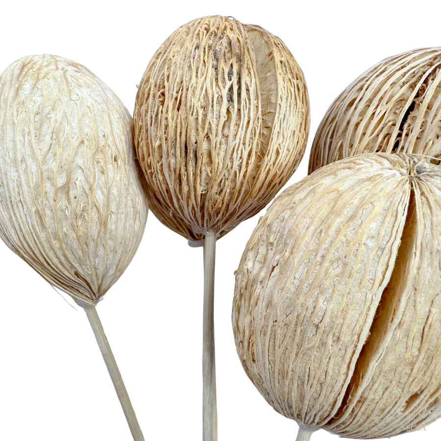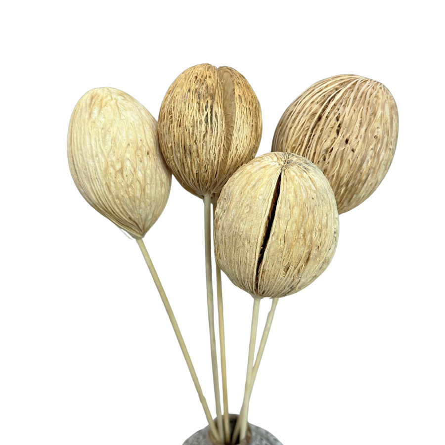 Kula mintola bielona to susz egzotyczny wykorzystywany głównie w suszonych bukietach i dekoracjach florystycznych. Charakteryzuje się kulistym kształtem o średnicy od 4 do 10 cm. Ze względu na swój unikalny wygląd przypominający nieco kokosa, kula mintola jest chętnie stosowana w tworzeniu stroików, wianków, bukietów oraz innych kompozycji suszonych, zarówno jako samodzielny element, jak i dodatek uzupełniający. Jako każda kula może różnić się kształtem i rozmiarem, co dodaje jej autentycznego charakteru.