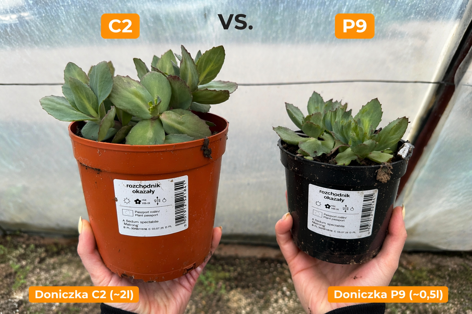 Sprzedajemy dobrze ukorzenione sadzonki w doniczce C2 (ok. 2 l ziemi), z rozwiniętym systemem korzeniowym, który: