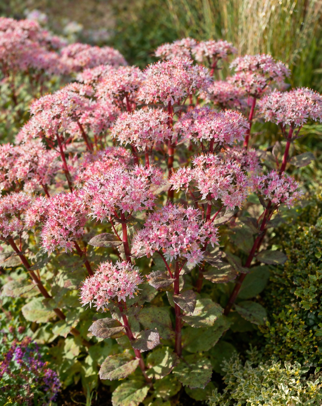Rozchodnik okazały (Sedum spectabile) to niezwykle wytrzymała bylina o dekoracyjnych, mięsistych liściach i widowiskowych, talerzowatych kwiatostanach. Tworzy gęste, zwarte kępy, które stanowią mocny punkt kolorystyczny w ogrodzie, gdy inne rośliny już przekwitają.