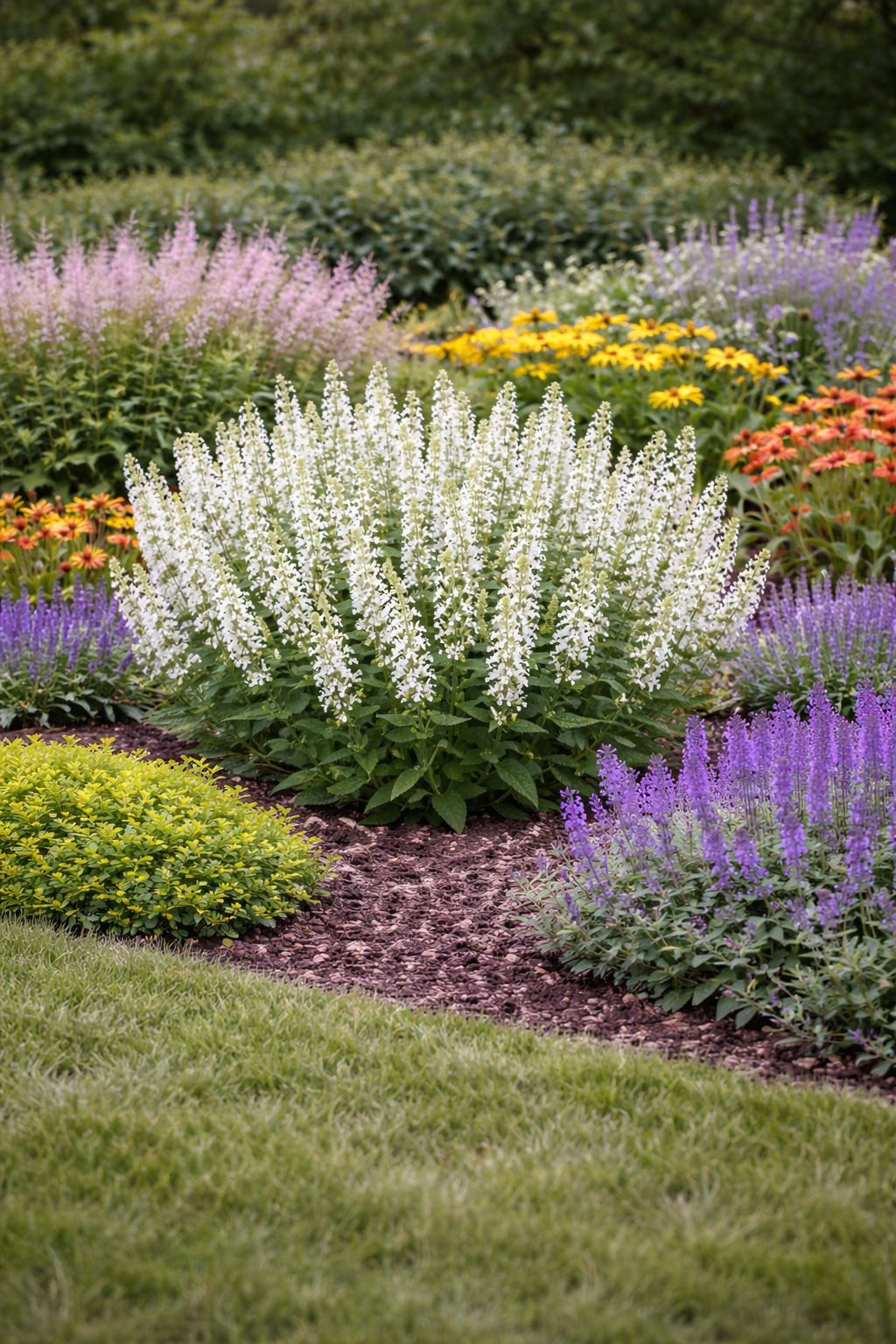 Szałwia omszona (Salvia nemorosa) to długo kwitnąca bylina ogrodowa, która tworzy zwarte, dekoracyjne kępy obsypane białymi kwiatami. To roślina, która daje kolor w ogrodzie przez wiele tygodni – od późnej wiosny aż do końca lata, a przy przycinaniu potrafi powtarzać kwitnienie.