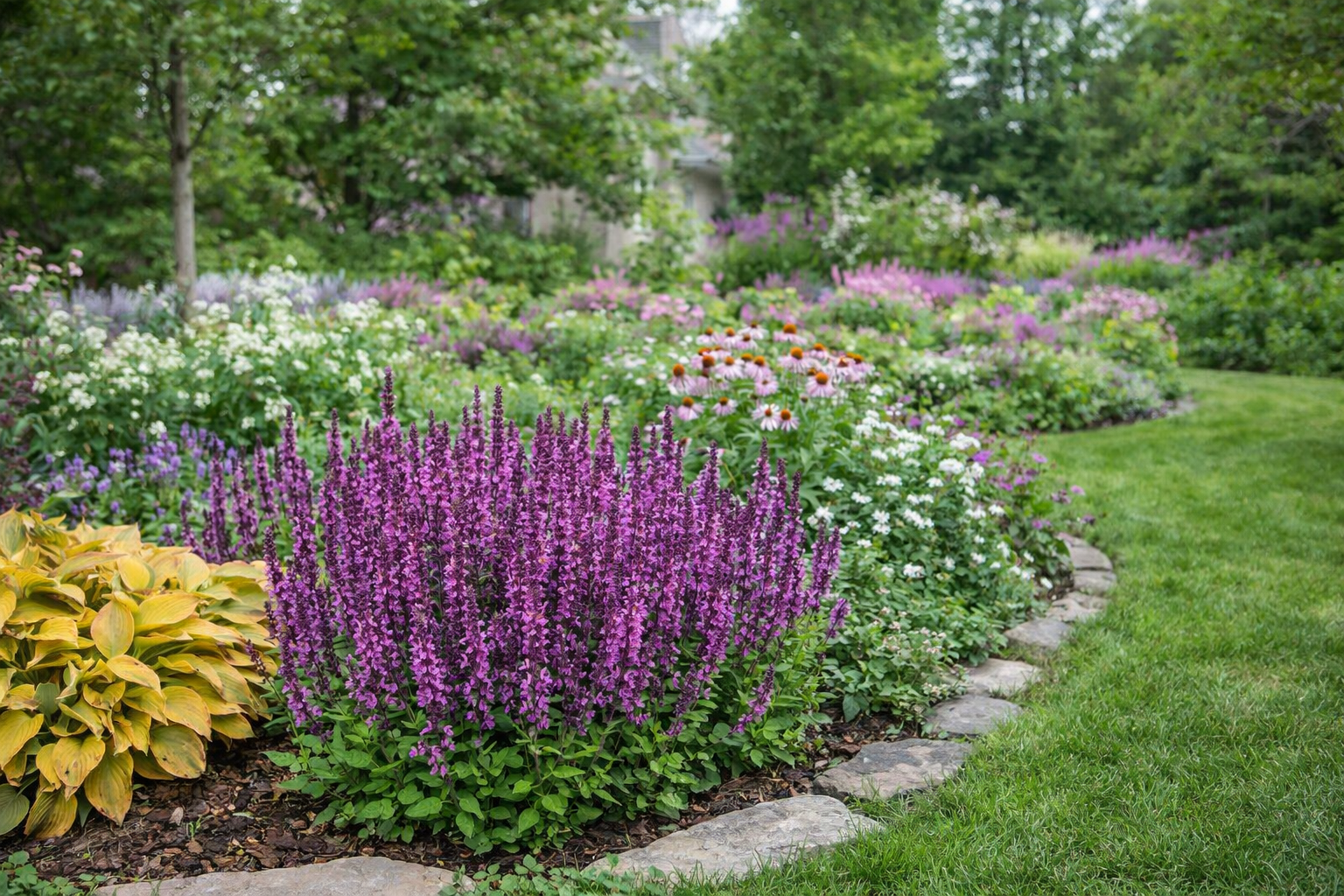 Szałwia omszona (Salvia nemorosa) to długo kwitnąca bylina ogrodowa, która tworzy zwarte, dekoracyjne kępy obsypane intensywnie różowymi kwiatami. To roślina, która daje kolor w ogrodzie przez wiele tygodni – od późnej wiosny aż do końca lata, a przy przycinaniu potrafi powtarzać kwitnienie.
