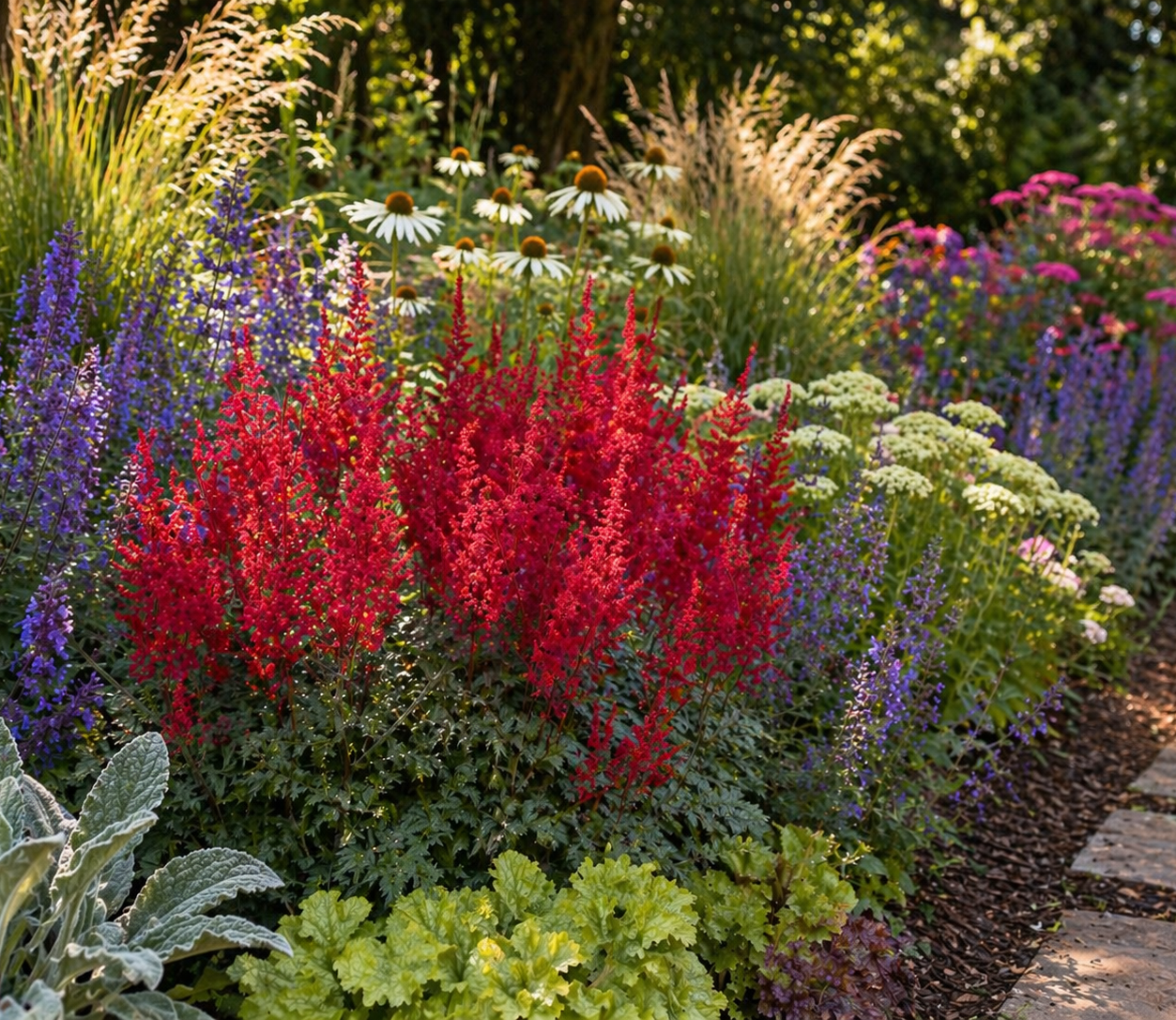 Tawułka Arendsa (Astilbe × arendsii) to efektowna bylina ogrodowa, która wprowadza na rabaty lekkość i elegancję dzięki swoim puszystym, pierzastym kwiatostanom. Tworzy zwarte, kępy, które świetnie sprawdzają się jako wypełnienie rabat oraz roślina do półcienistych i cienistych zakątków ogrodu.