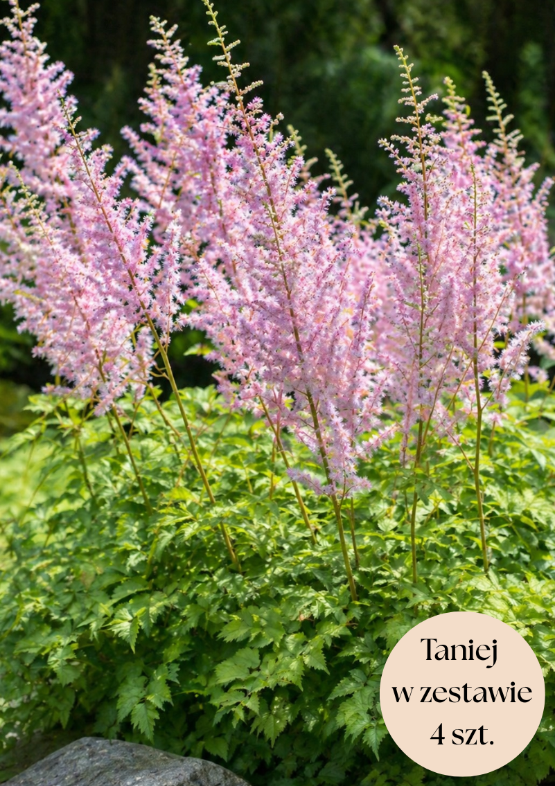 Tawułka Arendsa (Astilbe × arendsii) to efektowna bylina ogrodowa, która wprowadza na rabaty lekkość i elegancję dzięki swoim puszystym, pierzastym kwiatostanom. Tworzy zwarte, kępy, które świetnie sprawdzają się jako wypełnienie rabat oraz roślina do półcienistych i cienistych zakątków ogrodu.