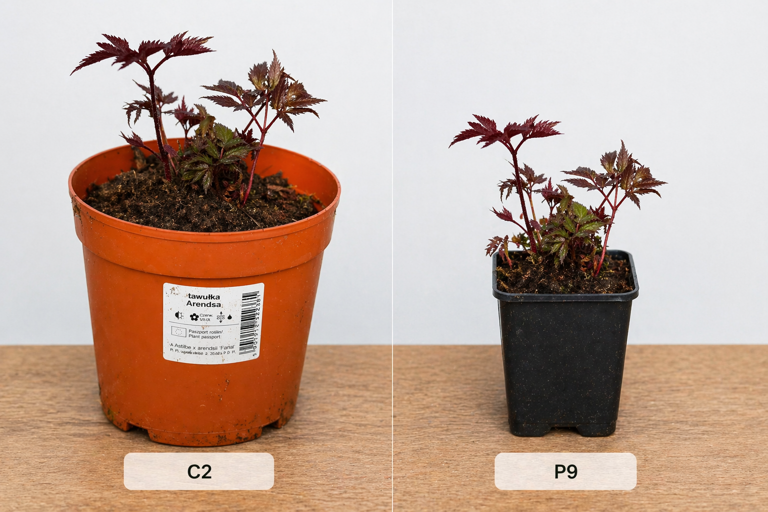 Sprzedajemy dobrze ukorzenione sadzonki w doniczce P14-C2 (ok. 1,5- 2 l ziemi), z rozwiniętym systemem korzeniowym, który: