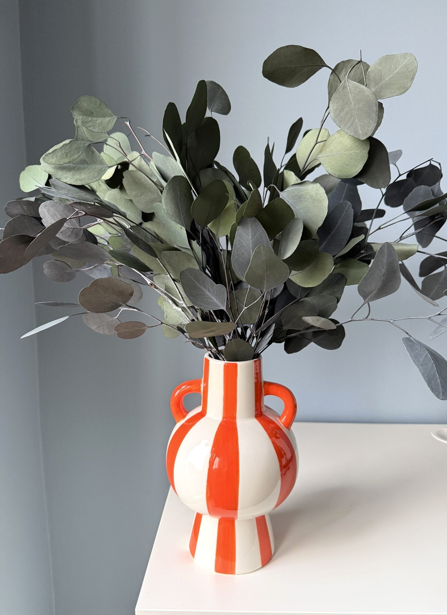 Energetyzujący akcent kolorystyczny w minimalistycznej formie. Ten ceramiczny wazon w ciepłych pomarańczowych pasach to dekoracyjny detal, który natychmiast rozświetli wnętrze i doda mu pozytywnej energii. Pasuje do stylu nowoczesnego, boho, skandynawskiego czy loftowego — tam, gdzie chcesz wprowadzić żywy punkt odniesienia.