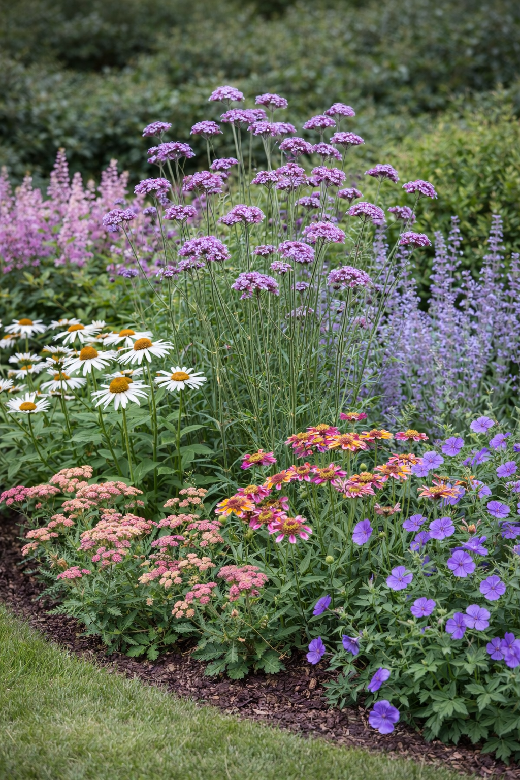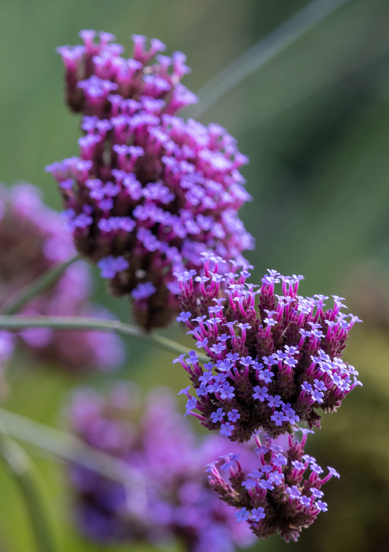 Werbena patagońska to jedna z tych roślin, które robią efekt „wow”, mimo że z pozoru są lekkie i delikatne. Tworzy wysokie, ażurowe kępy z cienkich, sztywnych pędów, które dorastają nawet do 120–150 cm wysokości. Dzięki temu nie przytłacza rabaty, tylko dodaje jej przestrzeni i lekkości.