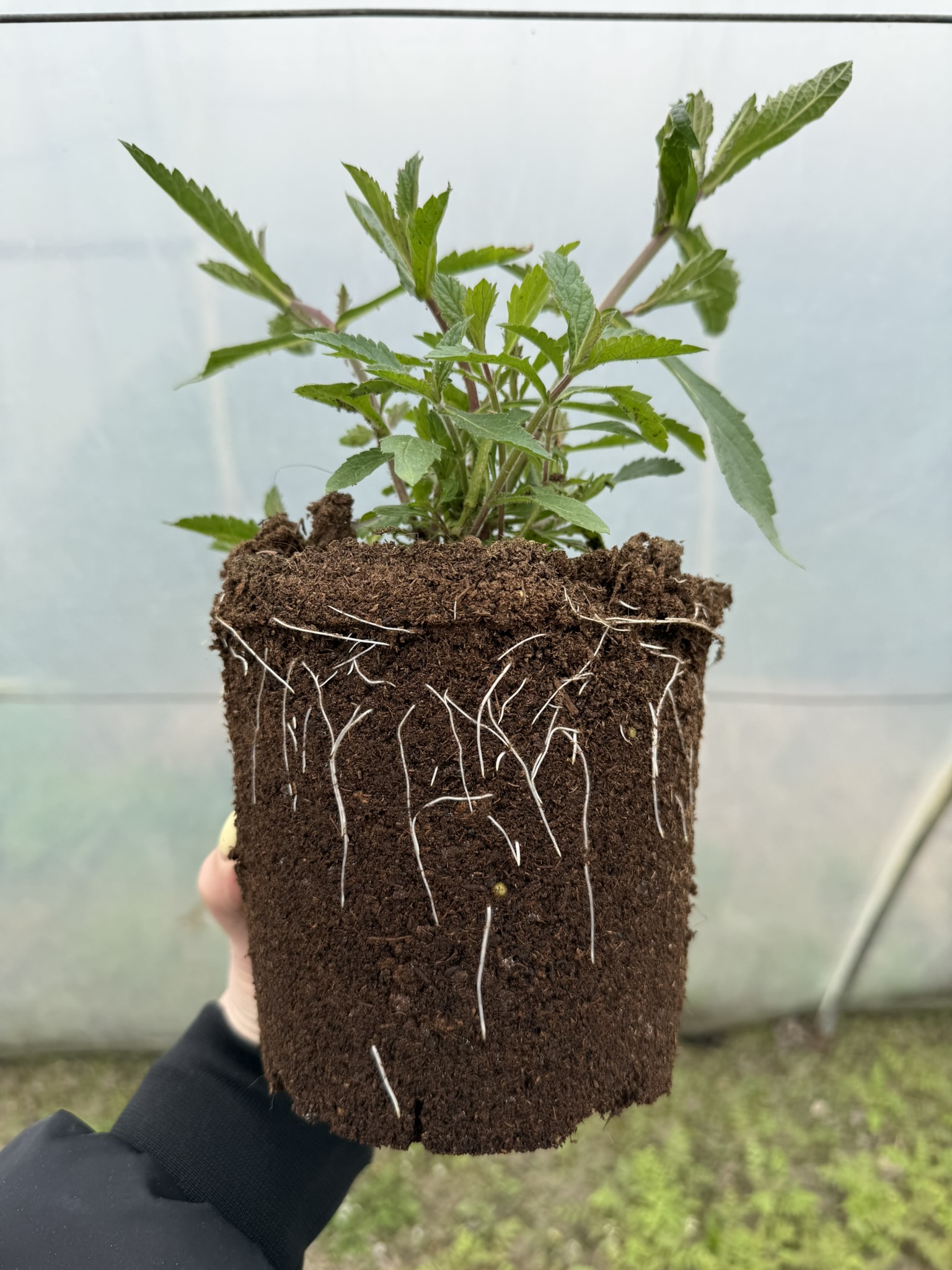 Sprzedajemy dobrze ukorzenione sadzonki w doniczce C2 (ok. 2 litry ziemi), z rozwiniętym systemem korzeniowym, który:
