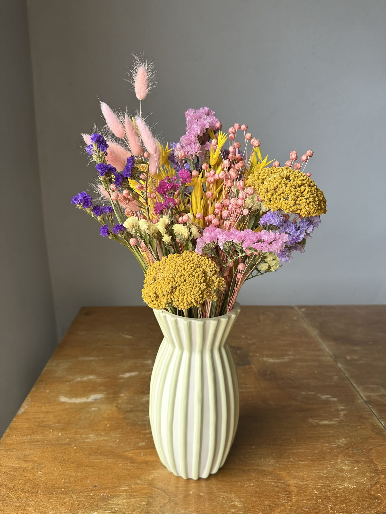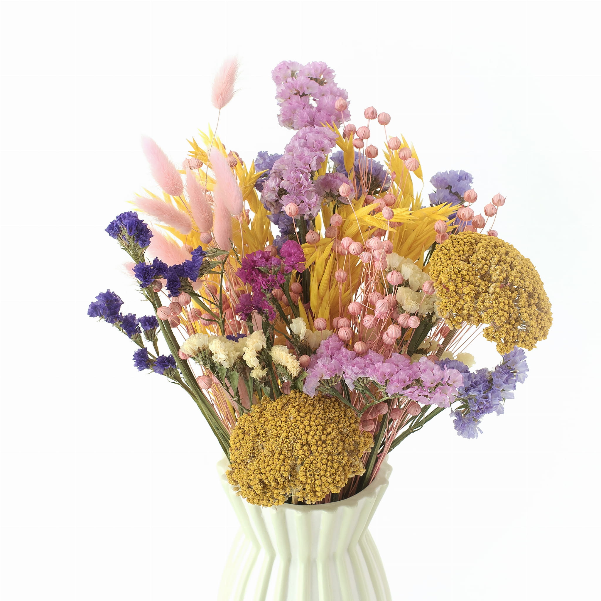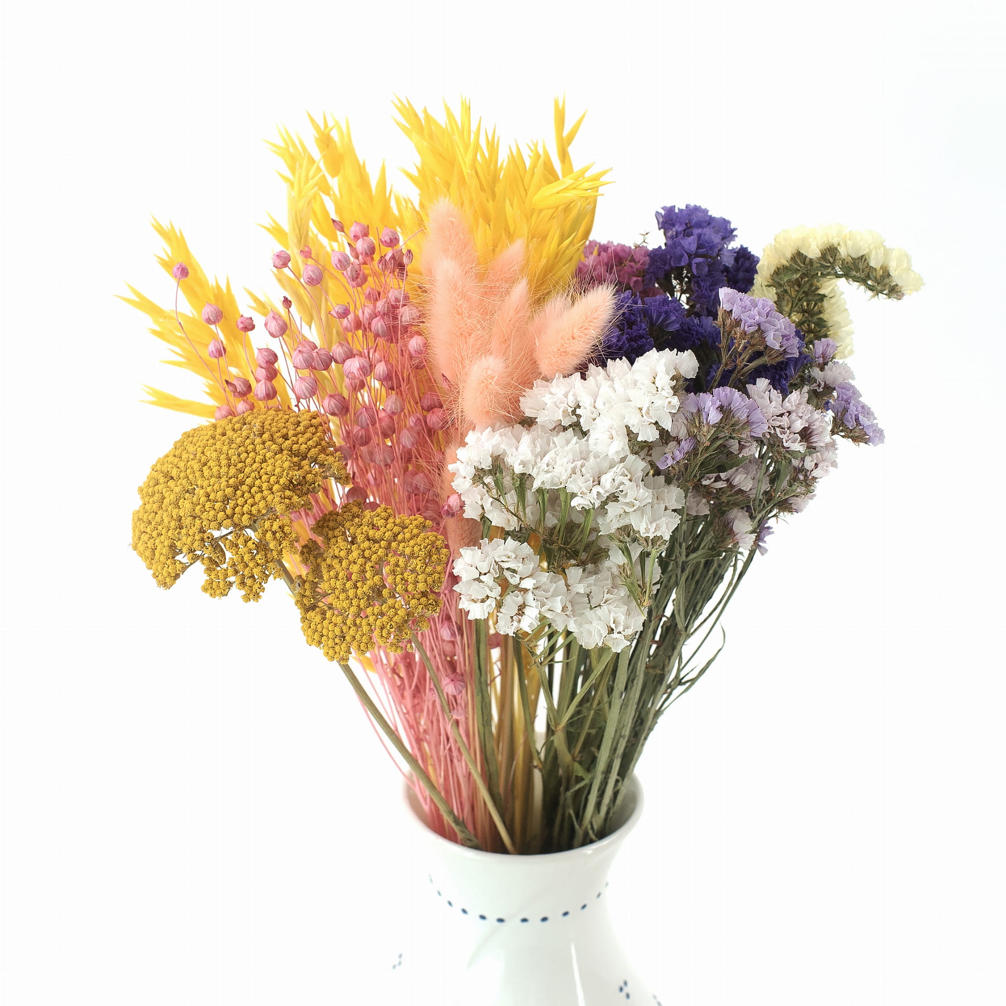 Ten bukiet z suszonych kwiatów to nie tylko prezent, to "Dziękują" zamknięte w wielobarwnych suszkach, które nie więdną, nie potrzebują pielęgnacji, a będą cieszyć oczy przez długie miesiące.